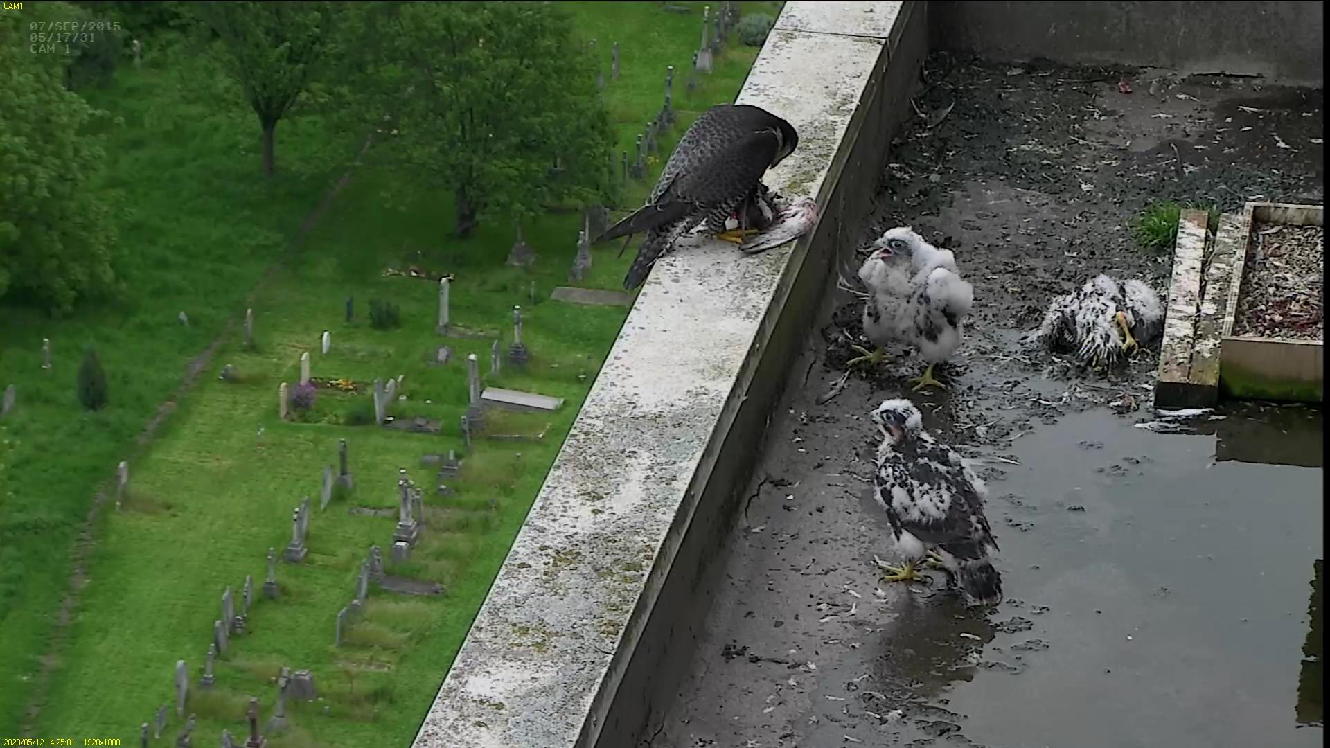 Azina feeding the chicks on the ledge