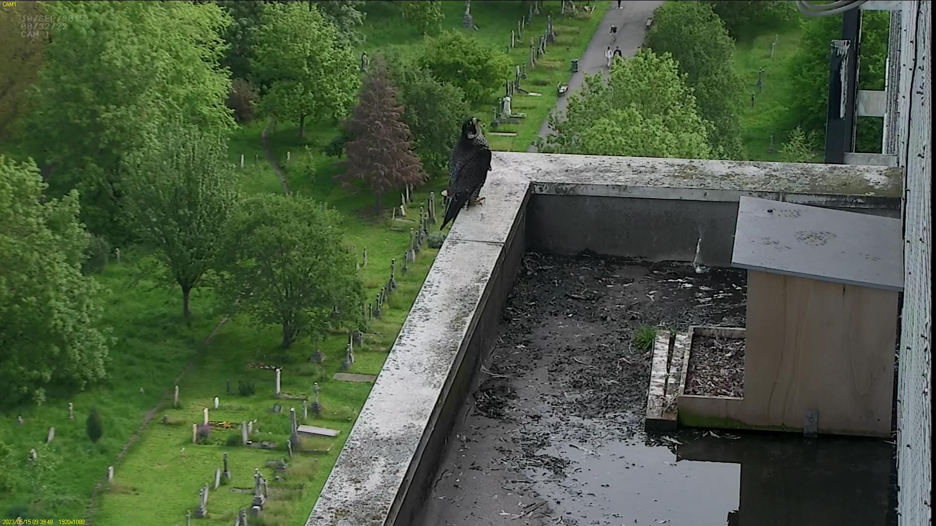 It’s been a typical day in the life of a young Peregrine. Long periods of inactivity with pancaking or sitting watching the world go by and preening. Bursts of mad activity with running around, jumping and flapping. P6T’s flapping is getting stronger and longer.