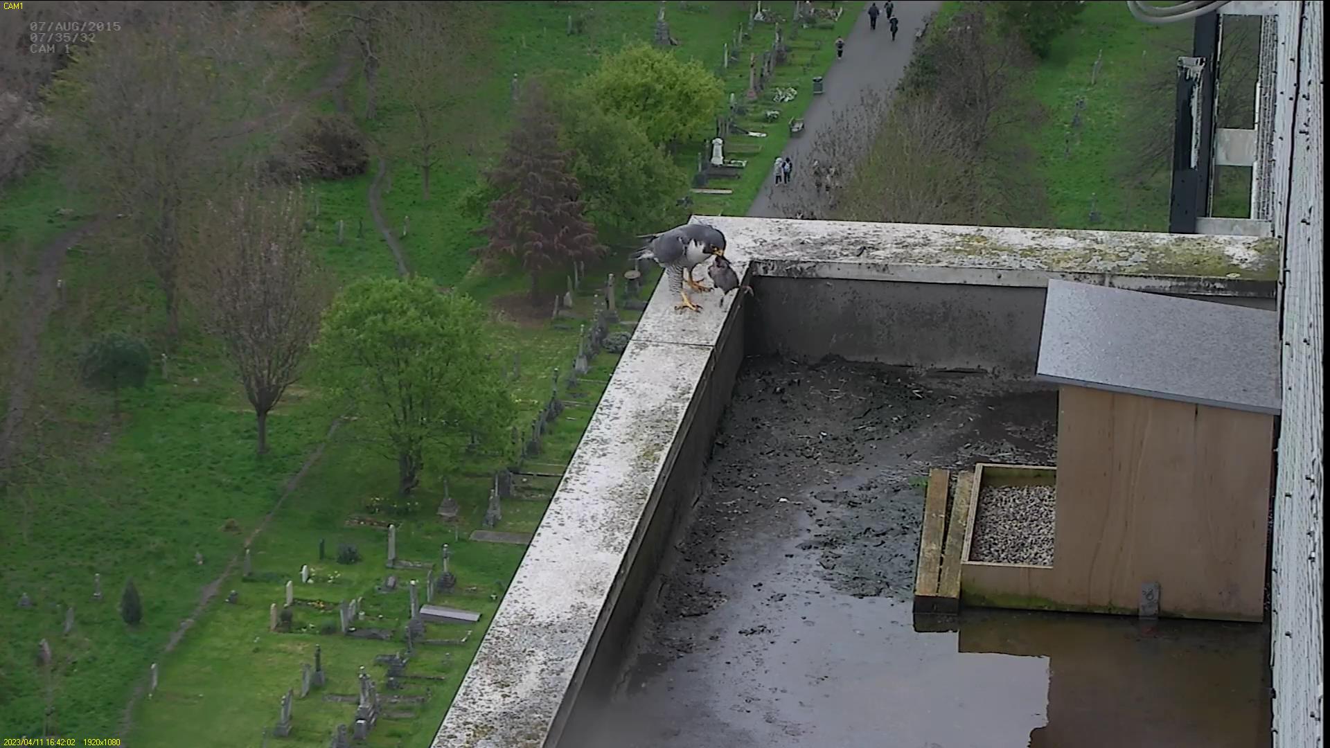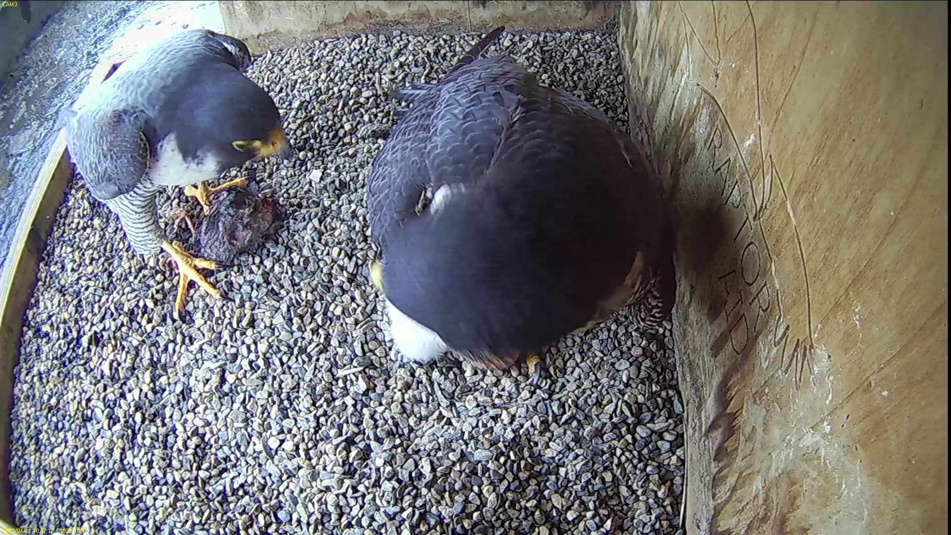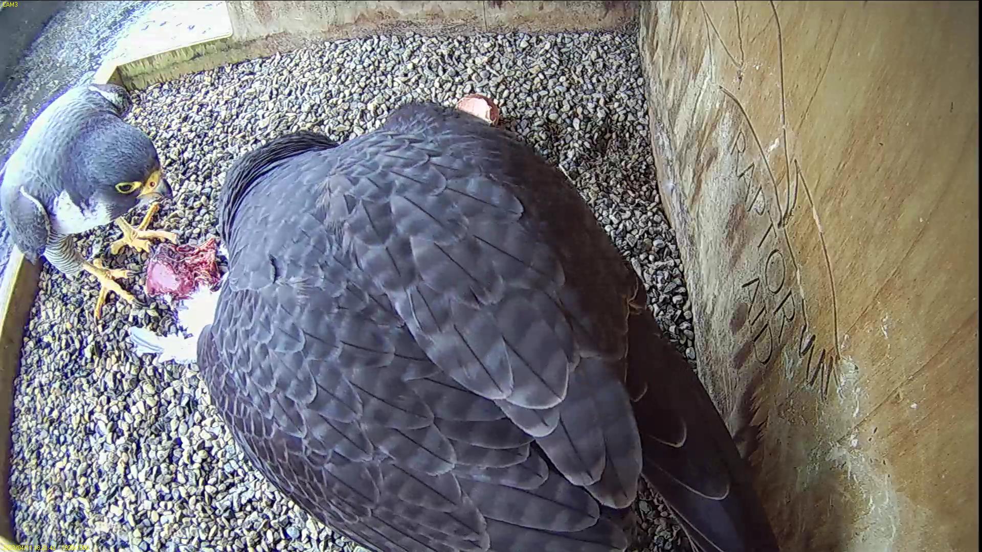 At 6.47 this evening when Tom brought yet more food that Azina refused but that gave us our first glimpse of the fluffy chick.