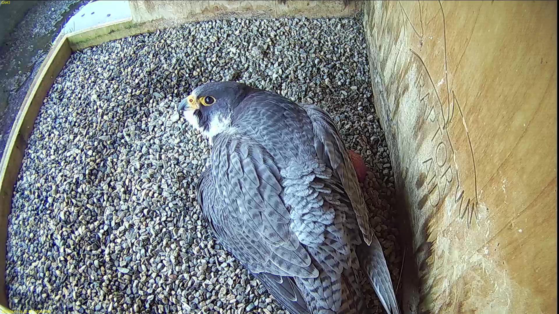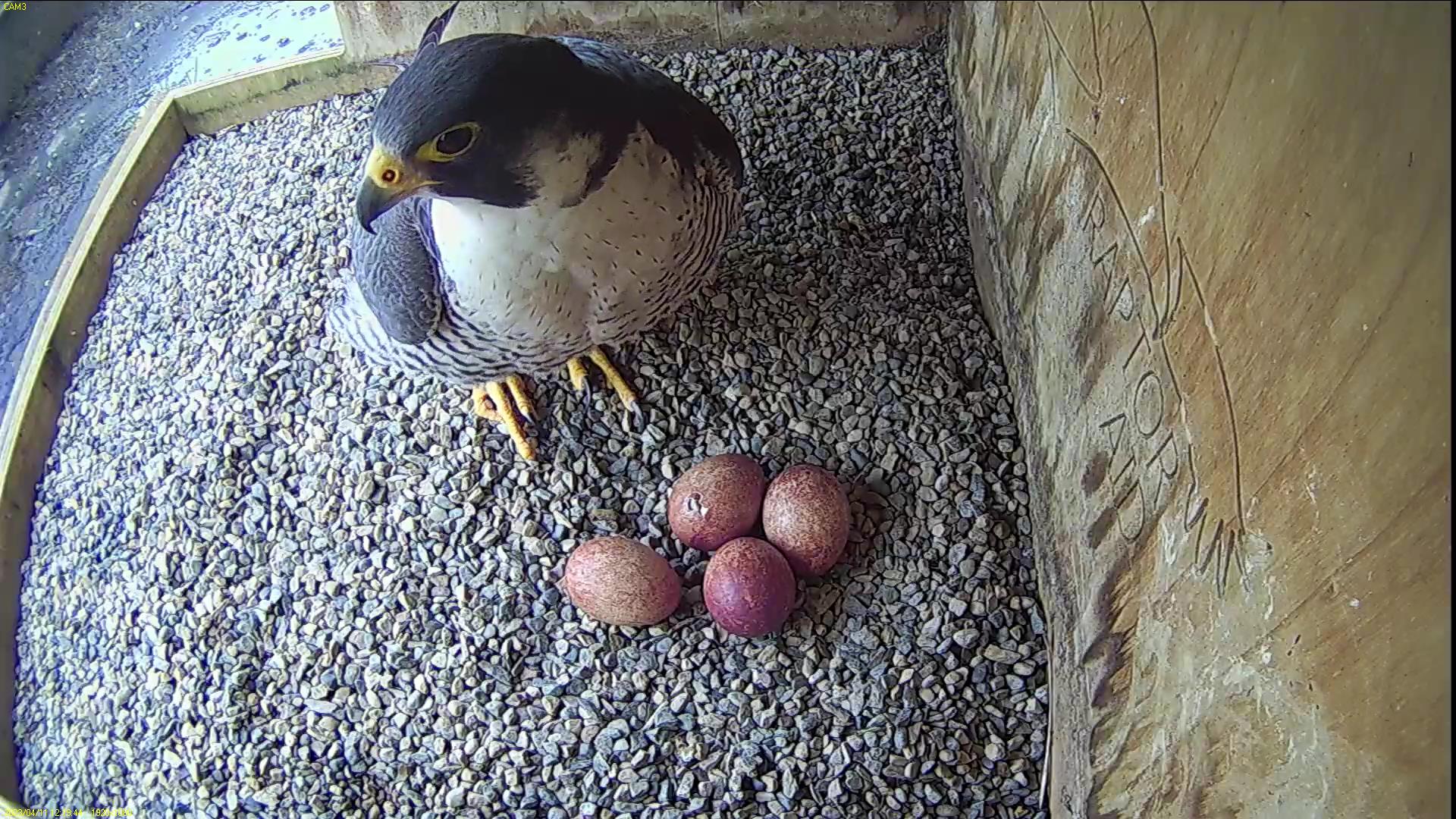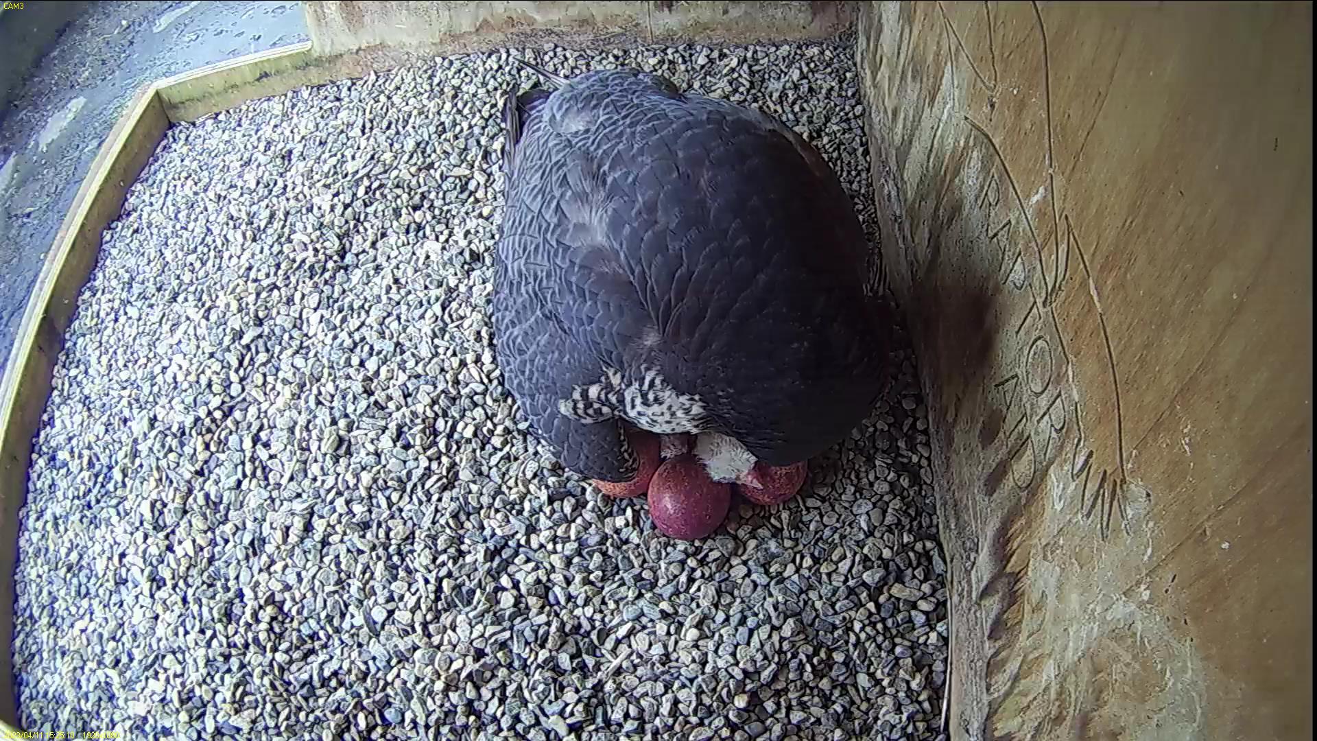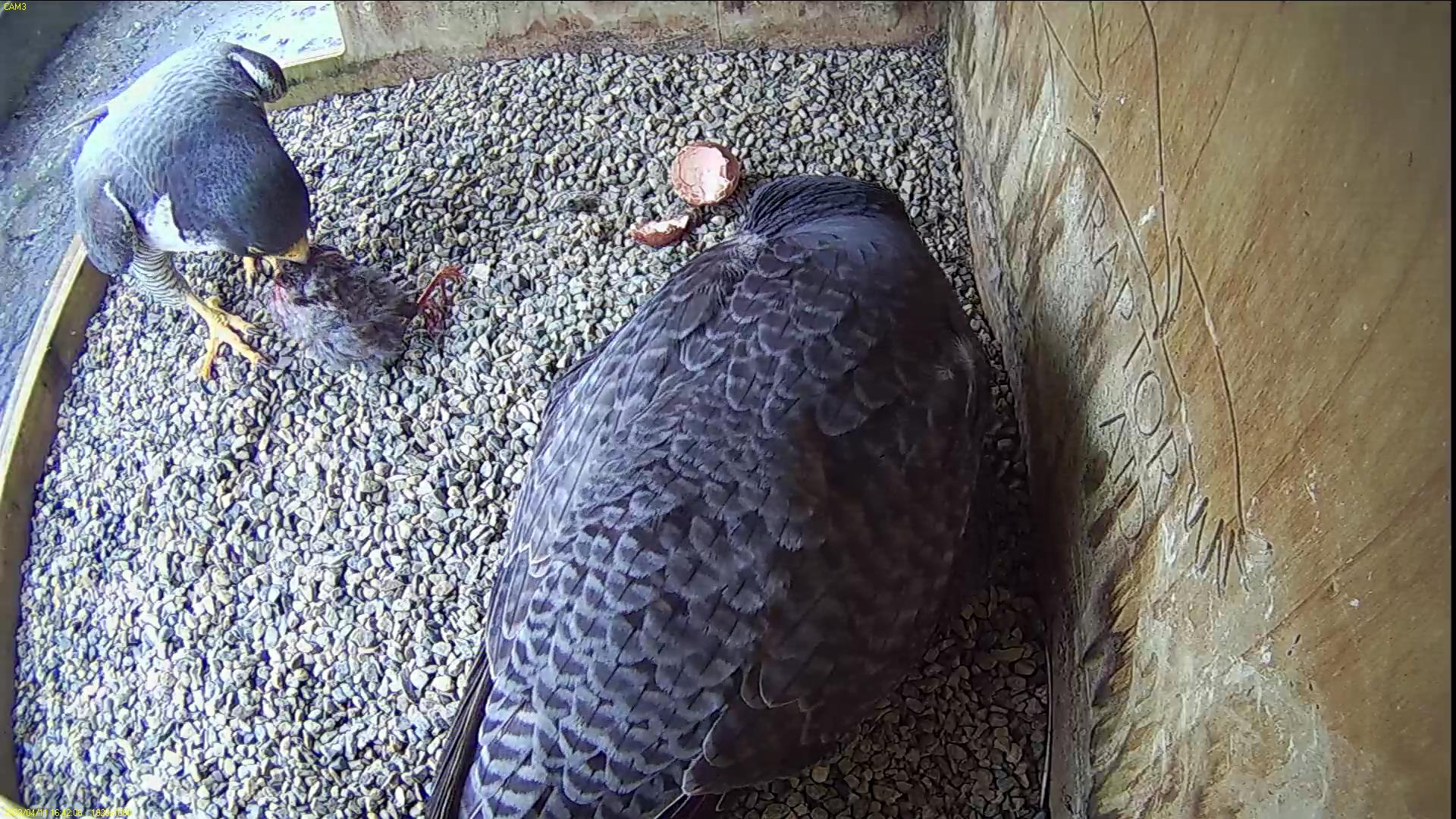 The day started a lot like yesterday with Tom doing a shift between 6.03 and 6.43. Then Azina took over. Tom brought her some food at 9.48 and she declined. She left for an unknown reason at 12.18 and an egg was pipped!