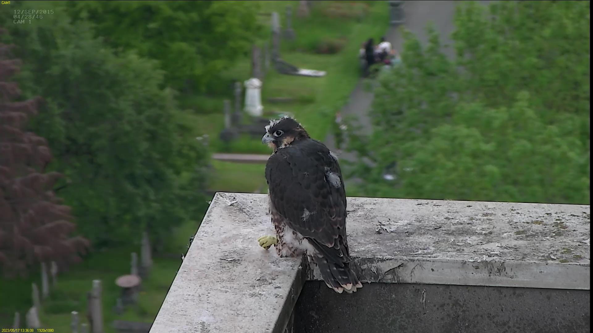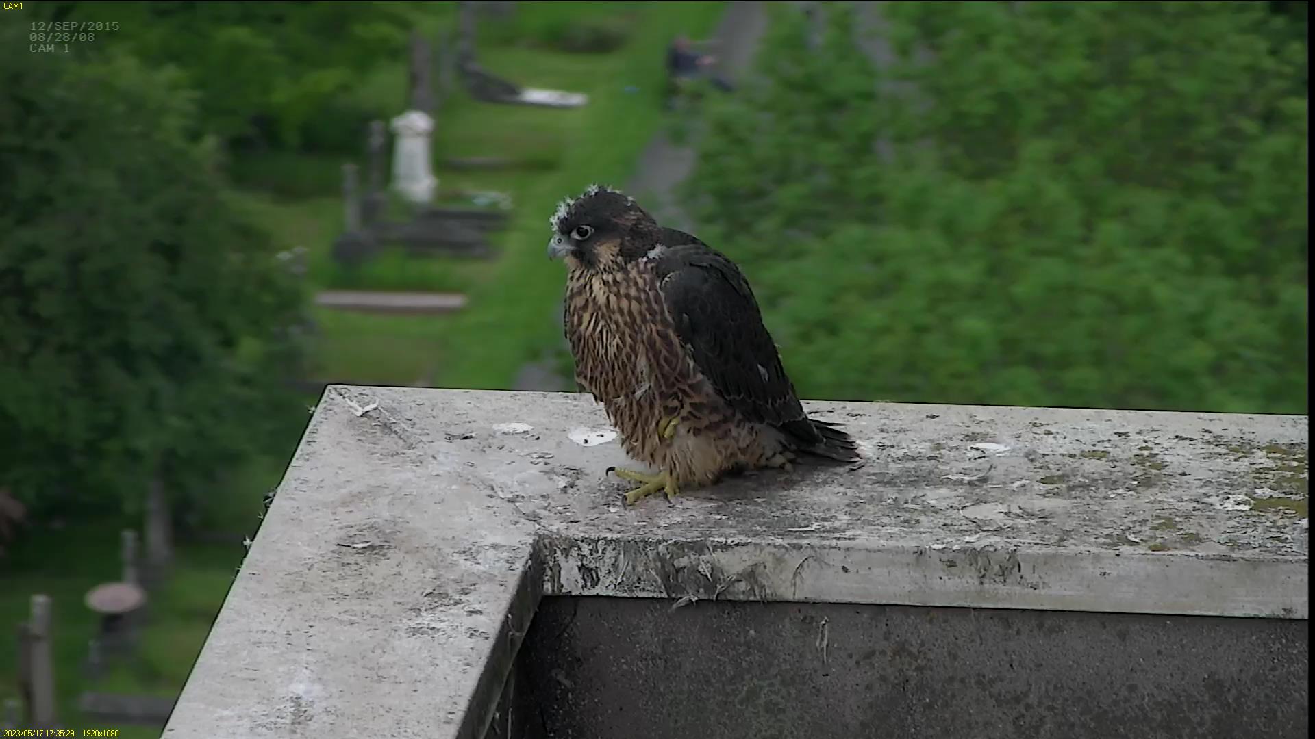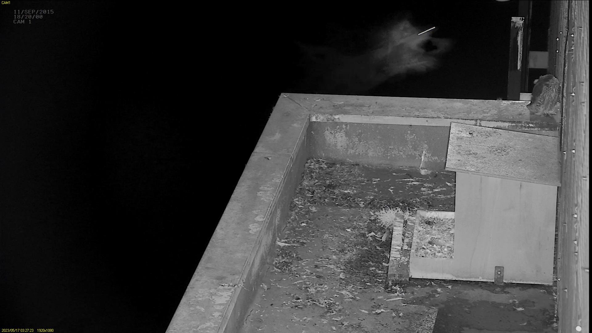 The chicks spent part of the night on the ledge, until it started raining and they took refuge in the box.