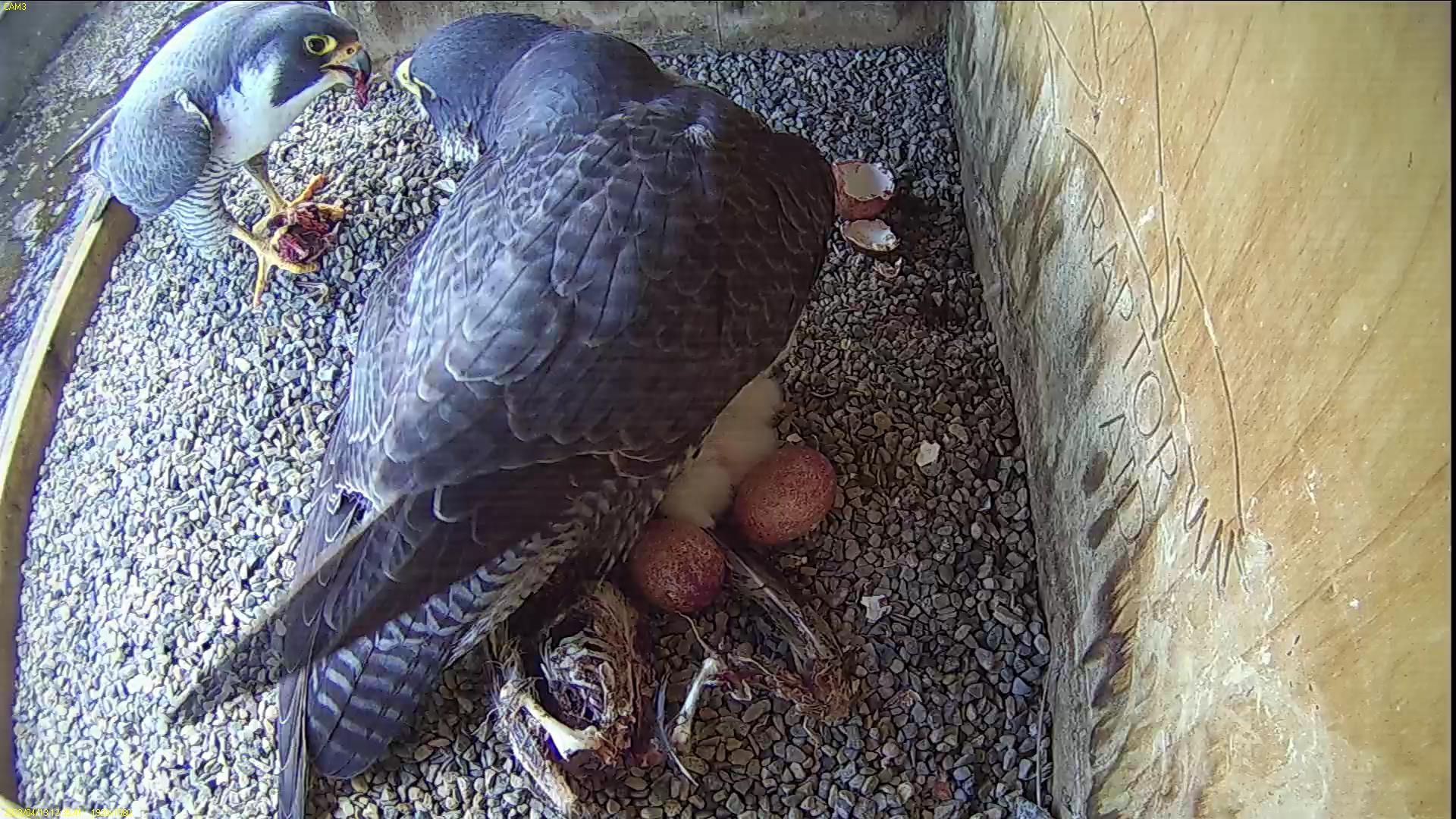 There were seven feeds today. There could have been eight but the chicks were still so stuffed from their previous meal that they didn’t even get up 😉 Starling and pigeon on the menu once again. Tom fed one of the Starling heads to the chicks, so at least that’s one less of them 😂