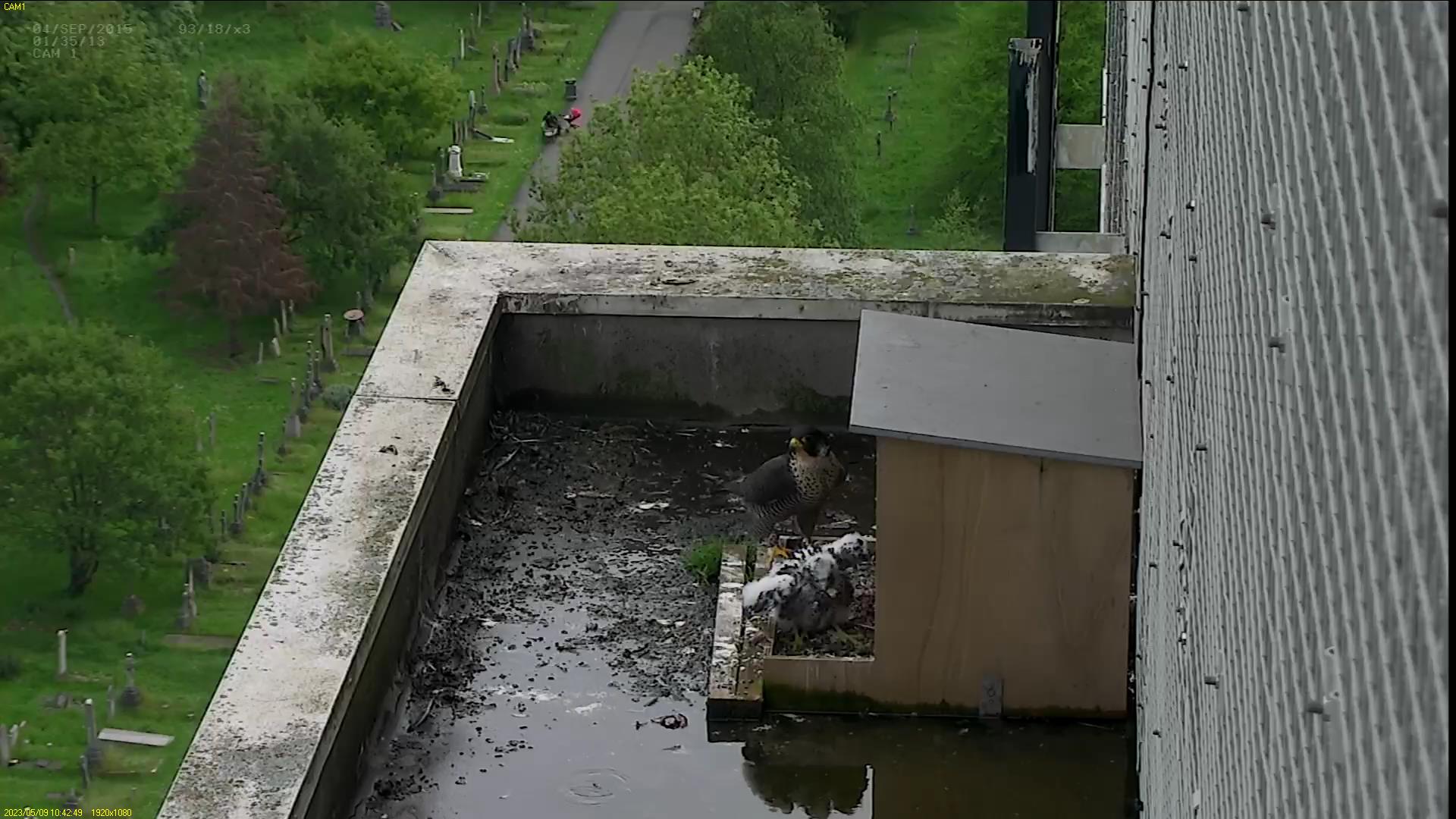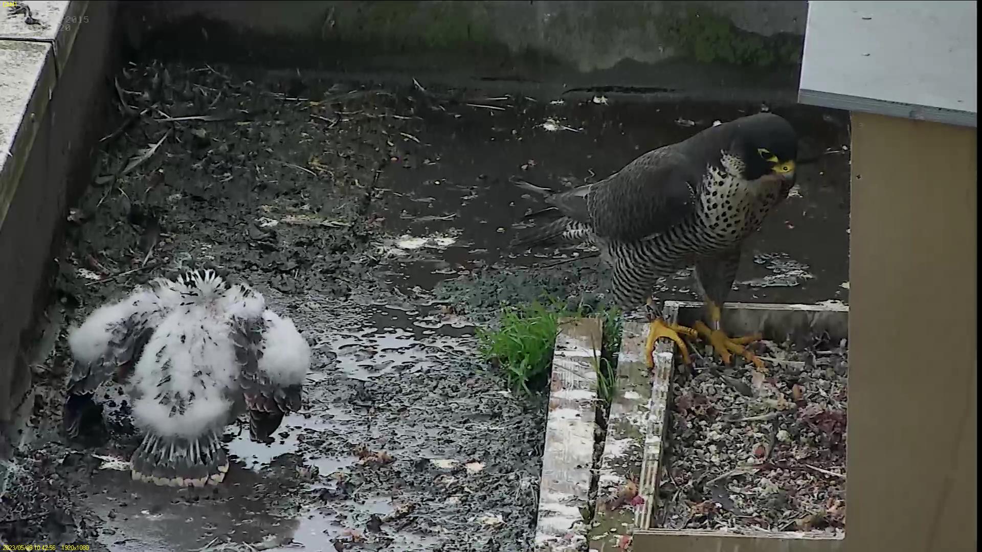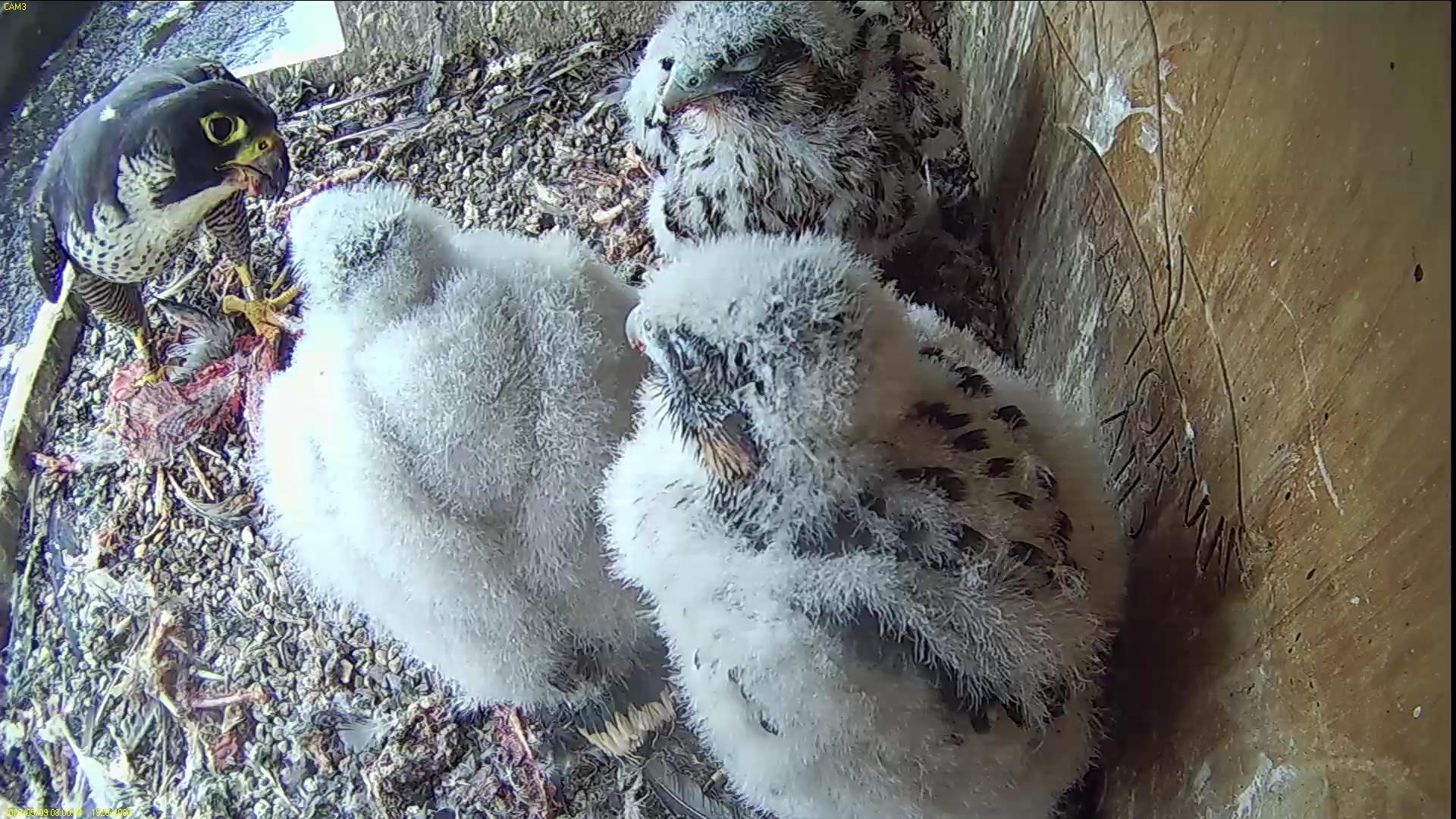 They were fed five times, four times by Azina and once by Tom. All feeds lasted around 25 minutes and all feeds consisted of pigeon.