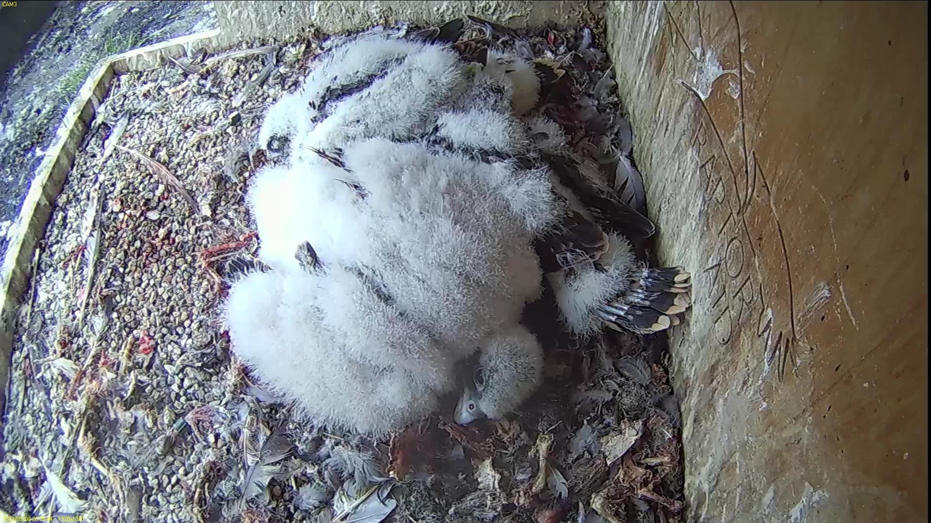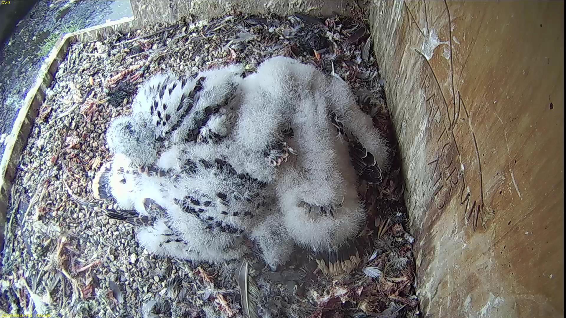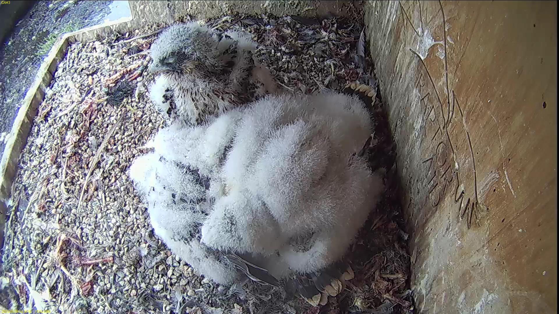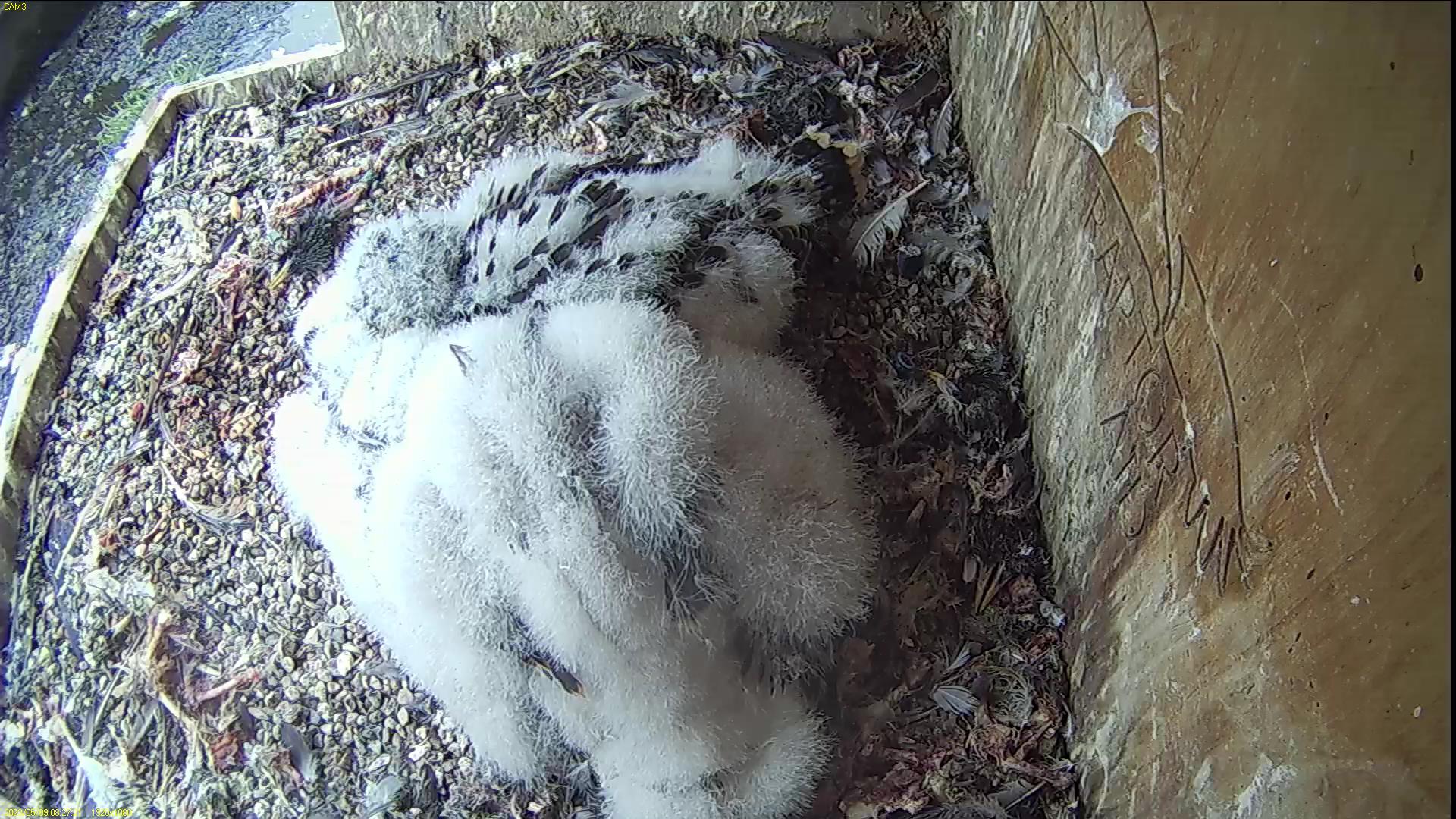 Chick #3 has now caught up with its siblings in size; no more tiny one in the middle. And it looks like it’s growing bigger, bigger than Chick #1 for sure. It could be all the down giving a false impression but probably not…