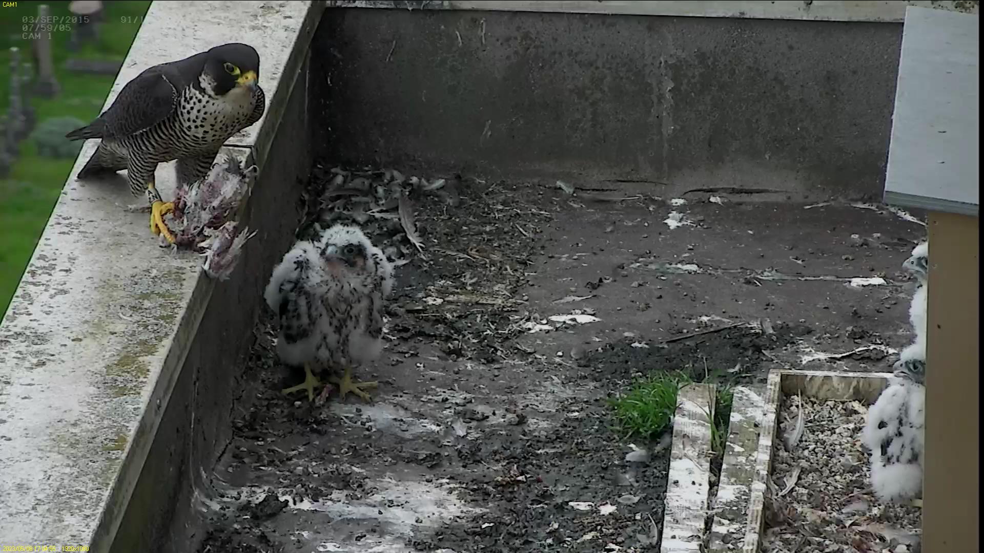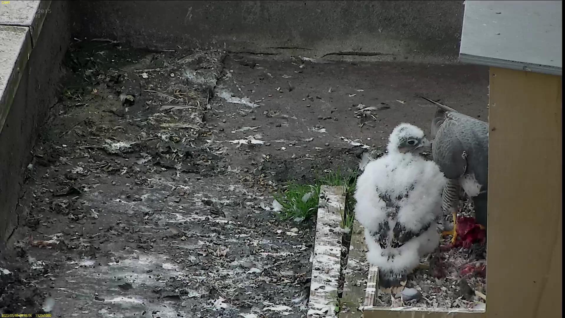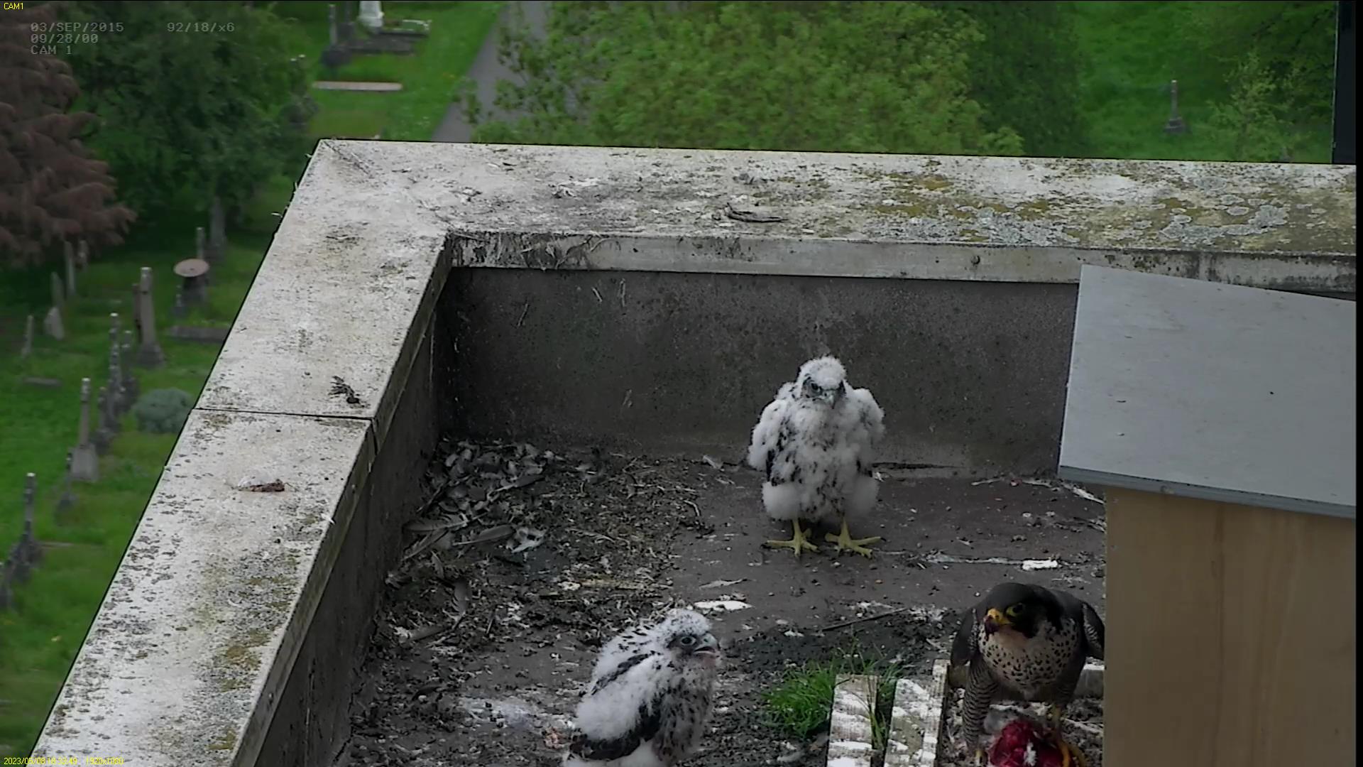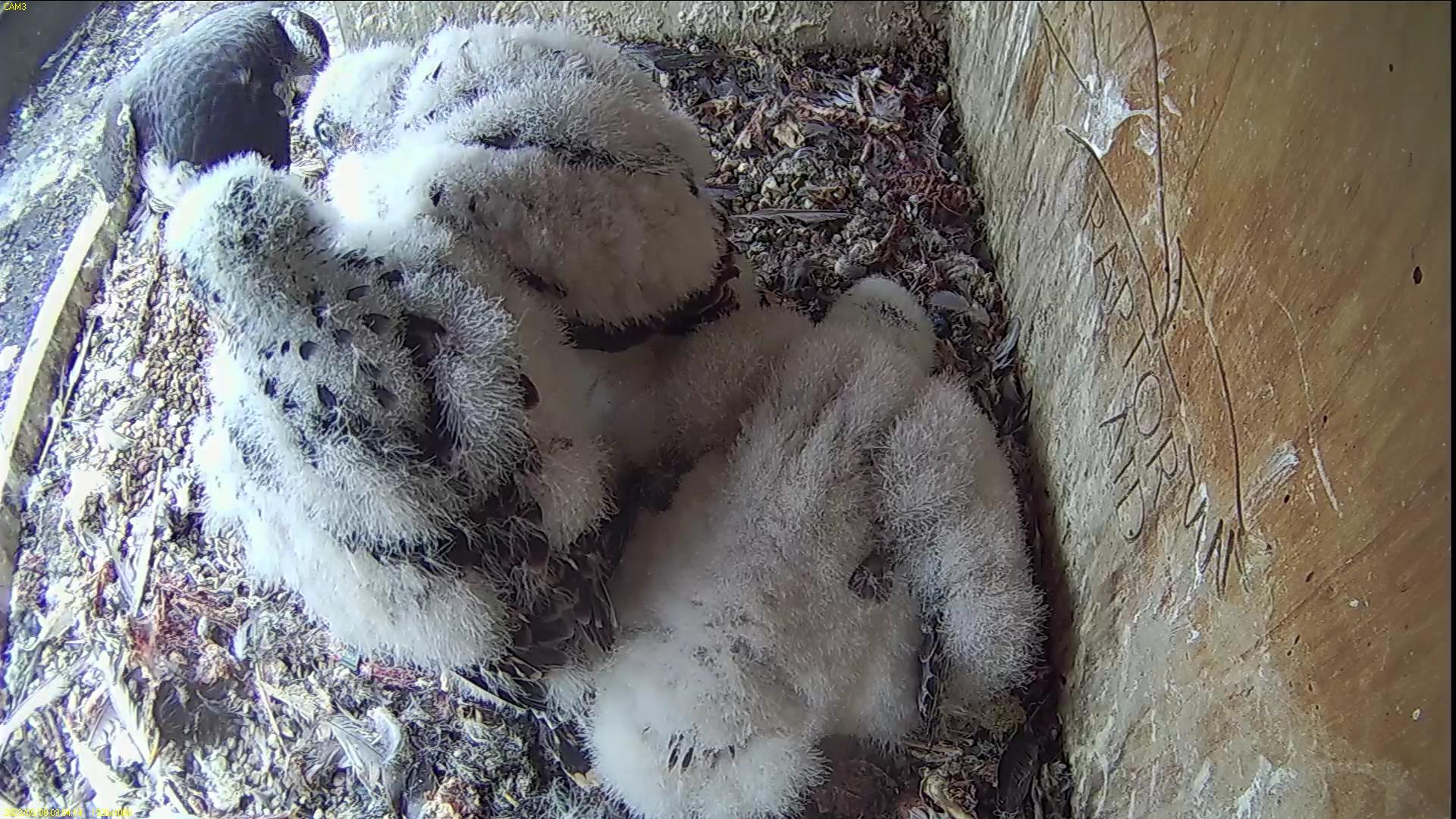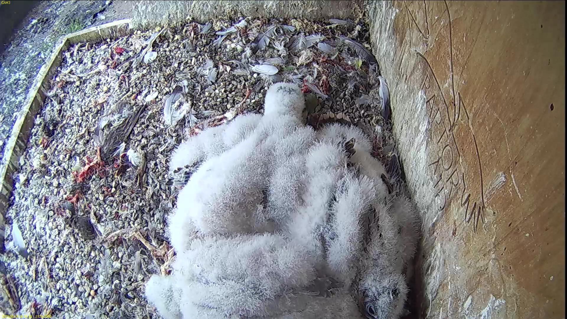 There was very heavy rain around 6pm. The shot below is of the three chicks huddled close together in the corner. It must have been scary with the noise on the roof of the box…
